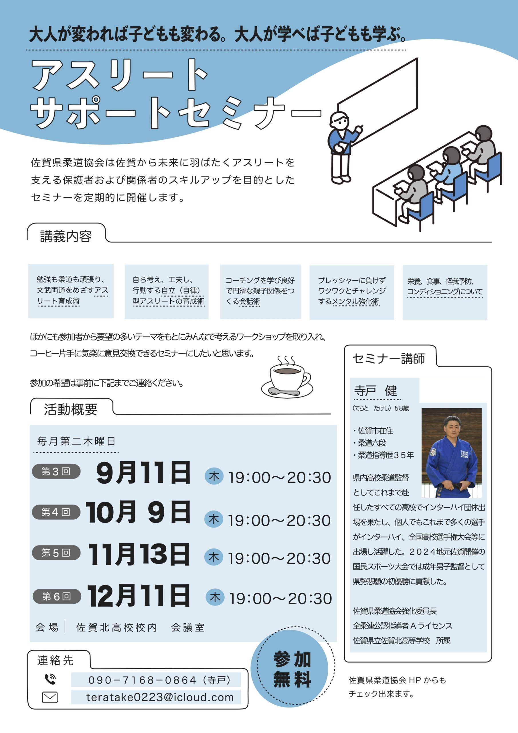 佐賀県柔道協会では、アスリートを支える保護者や関係者のスキルアップを目指して「アスリートサポートセミナー」を開始しています。
