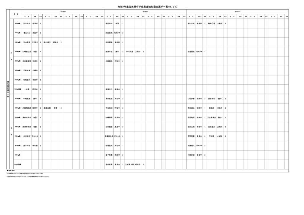 令和7年度の中学生 強化選手一覧をお知らせします。